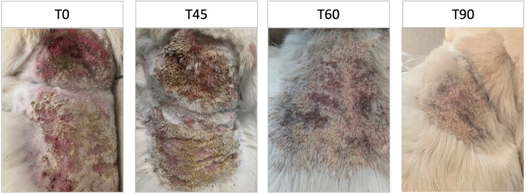 2 dogs achieved complete lesion resolution with hair regrowth within 7 to 12 weeks; the third showed partial improvement. No adverse events occurred.
